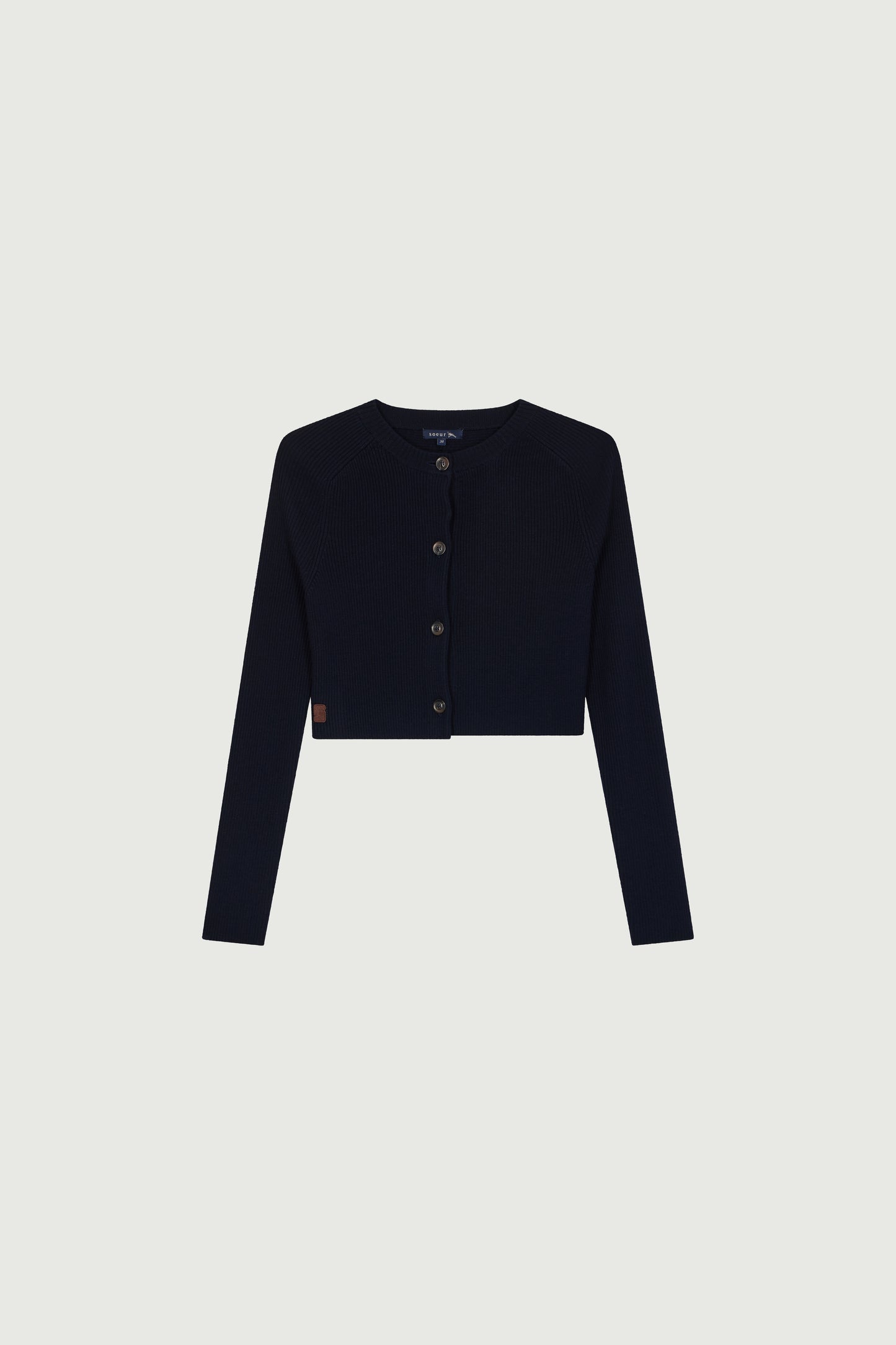 Merino wool rib knit cropped cardigan navy